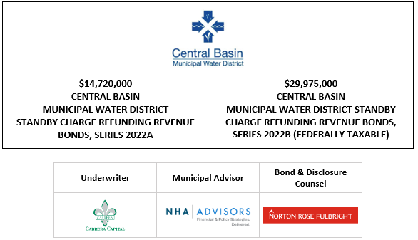 $14,720,000 CENTRAL BASIN MUNICIPAL WATER DISTRICT STANDBY CHARGE REFUNDING REVENUE BONDS, SERIES 2022A $29,975,000 CENTRAL BASIN MUNICIPAL WATER DISTRICT STANDBY CHARGE REFUNDING REVENUE BONDS, SERIES 2022B (FEDERALLY TAXABLE) FOS POSTED 3-3-22