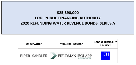 $25,390,000 LODI PUBLIC FINANCING AUTHORITY 2020 REFUNDING WATER REVENUE BONDS, SERIES A FOS POSTED 4-14-20 by AVIA Communications, Inc. | Apr 14, 2020 | Recent Deals | 0 comments