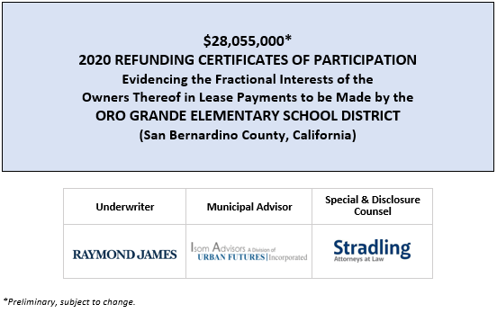 $28,055,000* 2020 REFUNDING CERTIFICATES OF PARTICIPATION Evidencing the Fractional Interests of the Owners Thereof in Lease Payments to be Made by the ORO GRANDE ELEMENTARY SCHOOL DISTRICT (San Bernardino County, California) POS POSTED 6-8-20