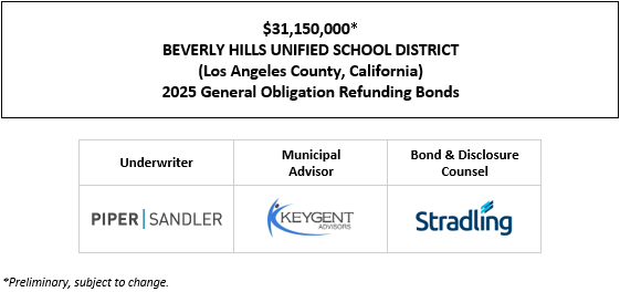 $31,150,000* BEVERLY HILLS UNIFIED SCHOOL DISTRICT (Los Angeles County, California) 2025 General Obligation Refunding Bonds POS POSTED 8-8-25 by AVIA Communications, Inc. | Aug 8, 2025 | Recent Deals | 0 comments
