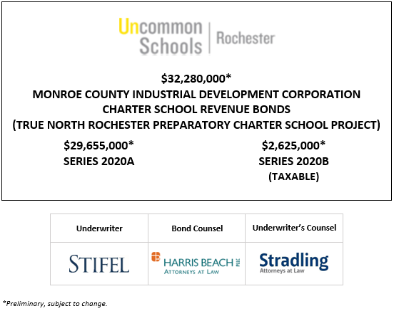 32,280,000* MONROE COUNTY INDUSTRIAL DEVELOPMENT CORPORATION CHARTER SCHOOL REVENUE BONDS (TRUE NORTH ROCHESTER PREPARATORY CHARTER SCHOOL PROJECT) $29,655,000* SERIES 2020A $2,625,000* SERIES 2020B (TAXABLE) PLOM POSTED 6-23-20