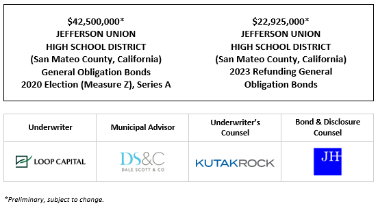 $42,500,000* JEFFERSON UNION HIGH SCHOOL DISTRICT (San Mateo County, California) General Obligation Bonds 2020 Election (Measure Z), Series A $22,925,000* JEFFERSON UNION HIGH SCHOOL DISTRICT (San Mateo County, California) 2023 Refunding General Obligation Bonds POS POSTED 5-9-23