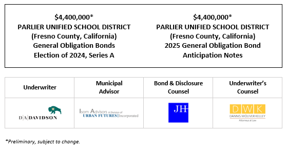 $4,400,000* PARLIER UNIFIED SCHOOL DISTRICT (Fresno County, California) General Obligation Bonds Election of 2024, Series A $4,400,000* PARLIER UNIFIED SCHOOL DISTRICT (Fresno County, California) 2025 General Obligation Bond Anticipation Notes POS POSTED 8-8-25