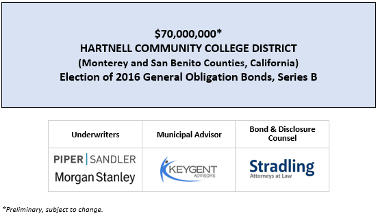 $70,000,000* HARTNELL COMMUNITY COLLEGE DISTRICT (Monterey and San Benito Counties, California) Election of 2016 General Obligation Bonds, Series B POS POSTED 7-9-20 by AVIA Communications, Inc. | Jul 9, 2020 | Recent Deals | 0 comments