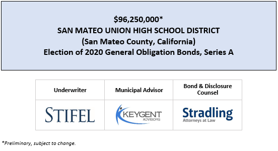 $96,250,000* SAN MATEO UNION HIGH SCHOOL DISTRICT (San Mateo County, California) Election of 2020 General Obligation Bonds, Series A POS POSTED 5-22-20 by AVIA Communications, Inc. | May 22, 2020 | Recent Deals | 0 comments