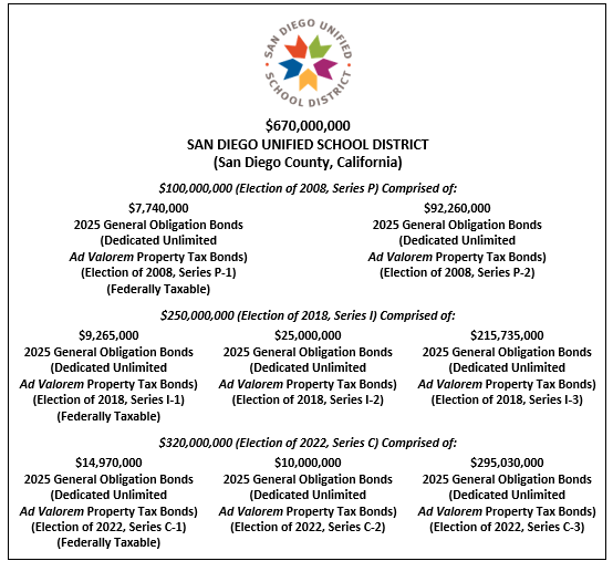 UNIFIED SCHOOL DISTRICT (San Diego County, California) $100,000,000 (Election of 2008, Series P) Comprised of: $7,740,000 2025 General Obligation Bonds (Dedicated Unlimited Ad Valorem Property Tax Bonds) (Election of 2008, Series P-1) (Federally Taxable) $92,260,000 2025 General Obligation Bonds (Dedicated Unlimited Ad Valorem Property Tax Bonds) (Election of 2008, Series P-2) $250,000,000 (Election of 2018, Series I) Comprised of: $9,265,000 2025 General Obligation Bonds (Dedicated Unlimited Ad Valorem Property Tax Bonds) (Election of 2018, Series I-1) (Federally Taxable) $25,000,000 2025 General Obligation Bonds (Dedicated Unlimited Ad Valorem Property Tax Bonds) (Election of 2018, Series I-2) $215,735,000 2025 General Obligation Bonds (Dedicated Unlimited Ad Valorem Property Tax Bonds) (Election of 2018, Series I-3) $320,000,000 (Election of 2022, Series C) Comprised of: $14,970,000 2025 General Obligation Bonds (Dedicated Unlimited Ad Valorem Property Tax Bonds) (Election of 2022, Series C-1) (Federally Taxable) $10,000,000 2025 General Obligation Bonds (Dedicated Unlimited Ad Valorem Property Tax Bonds) (Election of 2022, Series C-2) $295,030,000 2025 General Obligation Bonds (Dedicated Unlimited Ad Valorem Property Tax Bonds) (Election of 2022, Series C-3) FOS POSTED 10-15-25